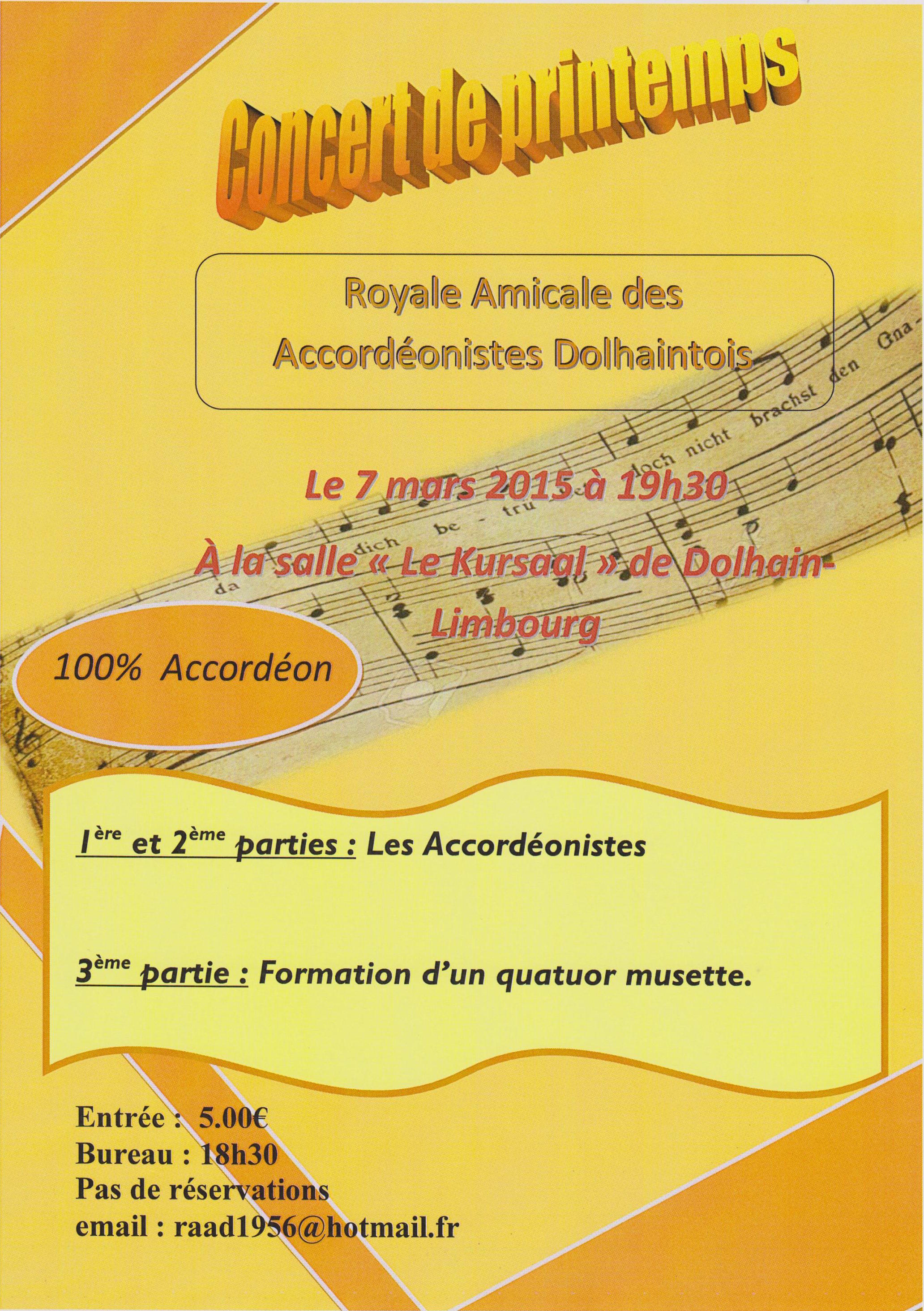 Concert 100% ACCORDEON le 7 mars prochain Laisser un commentaire Partager :TwitterFacebookLinkedInWhatsAppSkypeE-mail
